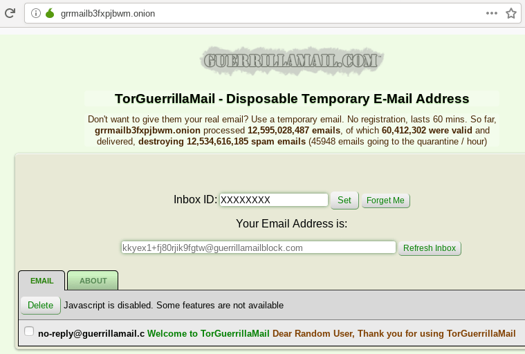 La opción Set, te permite elegir tu propio Inbox ID o recuperar alguna cuenta que te hayan asignando, podrías estar manejando varias al mismo tiempo, pero siempre teniendo presente que el sistema borra automáticamente todos los correos recibidos cada 60 minutos. Además desde TOR sólo puedes recibir mail, y usar el dominio que se te asigne. Esta versión no requiere tener habilitado javascript.