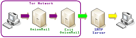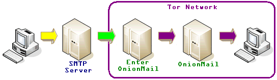 OnionMail a través de los nodos de salida / entrada reenvía mensajes entre las redes TOR e Internet de manera transparente.