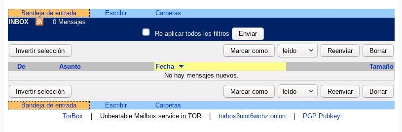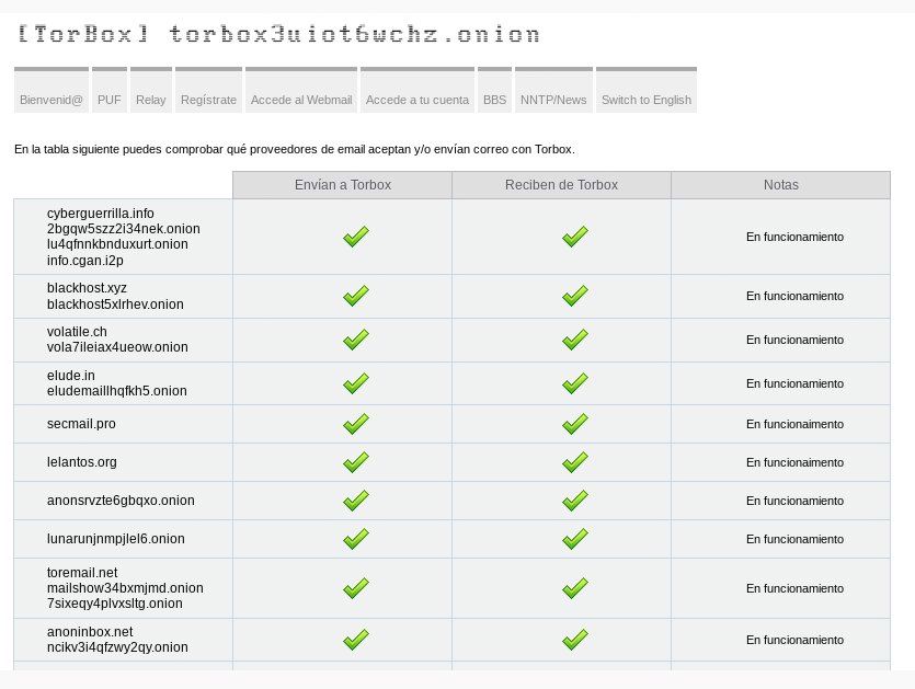 La dirección de correo asignada posee un dominio .onion y sólo permite intercambiar tráfico con otros usuario de Torbox o con servidores especificos de correos que puedes verificar en la sección relay.