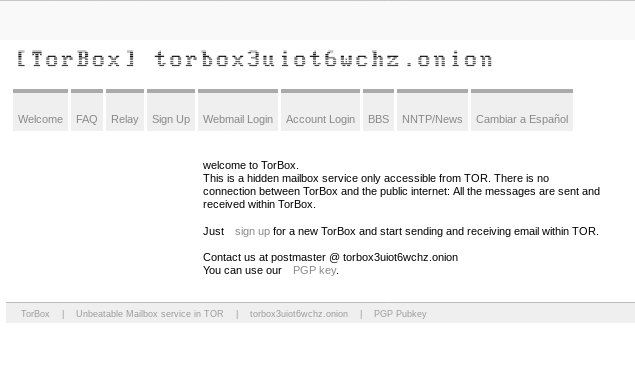 Como su descripción inicial lo indica, Torbox es un servicio de correo oculto accesible sólo desde TOR. No existe ninguna conexión entre TorBox y el resto de internet fuera de la red TOR: Todos los mensajes son enviados y recibidos dentro de TorBox.