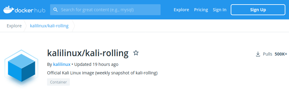 Siguiendo la línea anterior, otra alternativa es usar un contenedor oficial de Kali Linux para Docker, Kali sólo provee una imagen base de Docker por lo que es necesario instalar el resto de los paquetes usando apt. Esta forma de instalación permite usar las herramientas como si formaran parte del host donde se encuentra el contenedor, de forma similar a como funcionan las aplicaciones con Snap. Docker es una alternativa a la virtualización, cuando se necesitan utilizar varias herramientas o para crear entornos aislados. Docker es liviano, se ejecuta de forma nativa en Linux y es ideal para casos de uso que no requieren GUI.