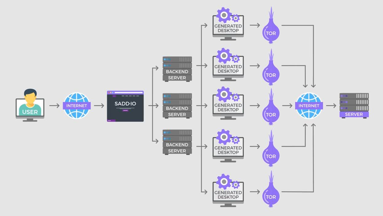 Un servicio de máquinas temporales, que recomiendo, es SADD, su infraestuctura proporciona a sus usuarios una máquina virtual, con Kali Linux, aislada del navegador que también se enruta a través de la red Tor. La unidad controlada no sólo está separada físicamente, sino que la red en la que opera también está separada. Es decir, los usuarios no pueden ser atacados, estrictamente, por esta IP pública. La comunicación es cifrada a través de TLS 1.3 y al finalizar, ellos insisten, en que toda la información es eliminada mediante destrucción forense. La versión gratuita tiene un tiempo límite de 15-60 min, pudiendo se prolongado en la versión de pago, la cual no es tan inalcanzable, ya que hablamos de montos desde los 2.5 dólares mensuales.