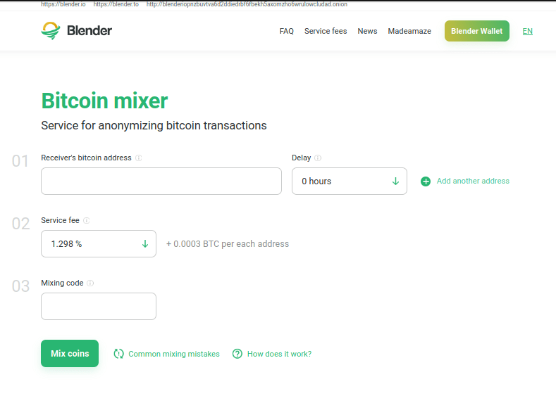 Es un mezclador, muy utilizado, de criptomonedas que opera desde el año 2017, accesible tanto por la «clearweb» a través de su dominio blender.io y blender.to, como desde la red tor o su bot en telegram.